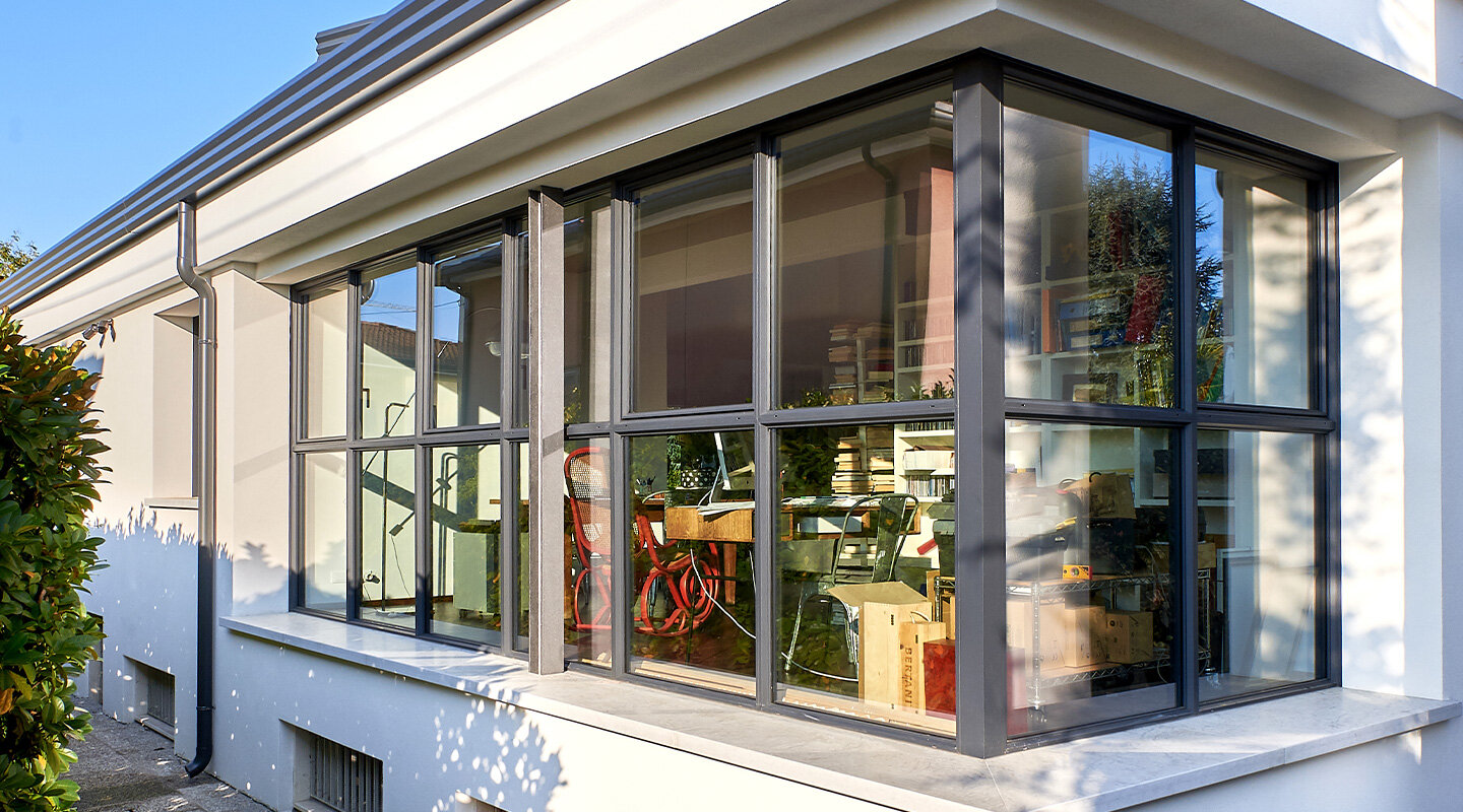 SlimLine Ferro Bauhaus tarzında bir tasarım. Bu özel ince çelik görünümü geleneksel çelik pencere tasarımı andırır. |
